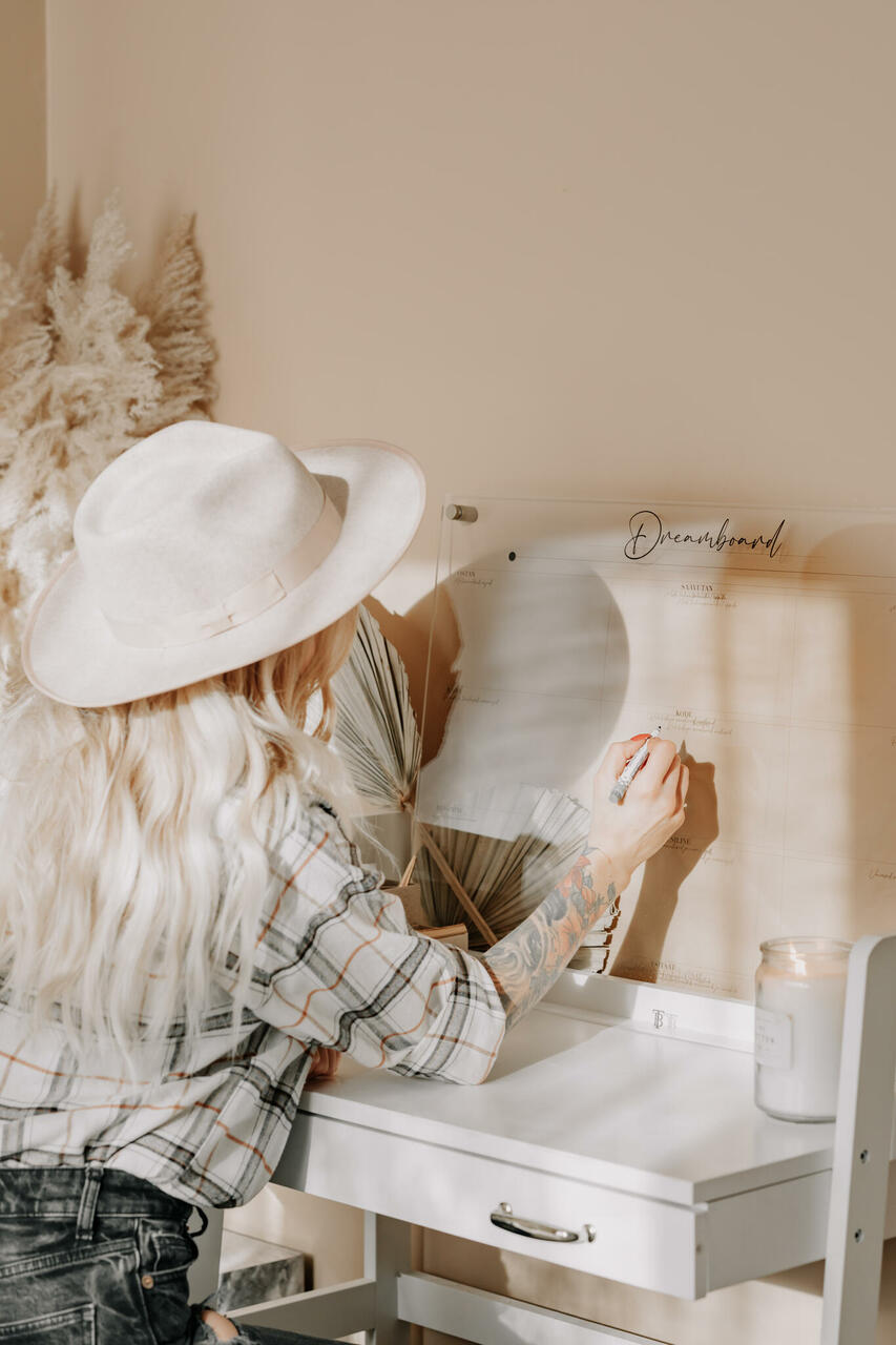 Dreamboardi tahvlil e. visioonitahvlil on välja toodud kõik eluvaldkonnad, kuhu alla kuuluvad armastus, kodu, raha, sinu füüsilised ja spirituaalsed unistused, reisimine, ostu ja saavutamise soovid ja suurimad unistused. Tahvlile saad kas kirjutada või kleepida pilte oma unistustest ja soovidest. Alumises osas on ruumi jäetud tsitaadile- sinna saad kirjutada mõttetera, mis sind hetkes kõige rohkem kõnetab ja motiveerib.